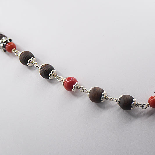 Red Coral Silver Tulasi Mala.
