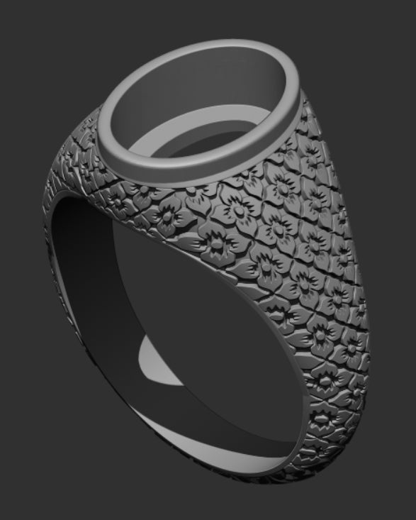 Keeping the overall form clean and minimal was the main focus. Along the body of the ring, a subtle inlay pattern was carved into the surface in the 3D design phase.