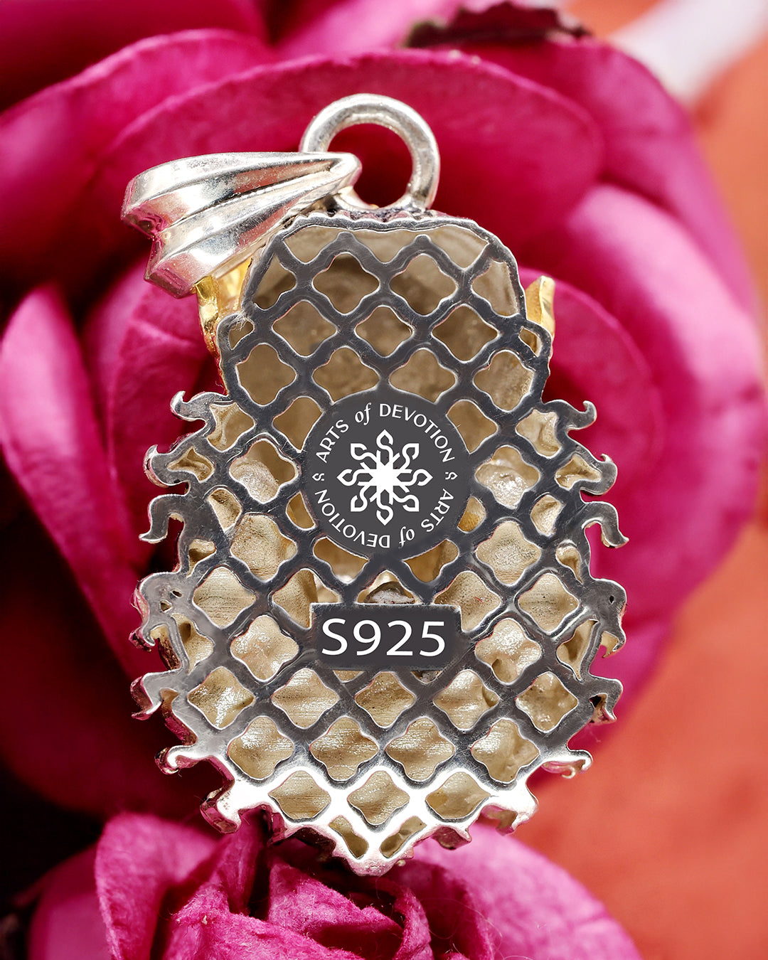 Hand-crafted with devotion in 92.5 Sterling Silver, plated in 24K gold and Black rhodium, and finished with vibrant enameling.