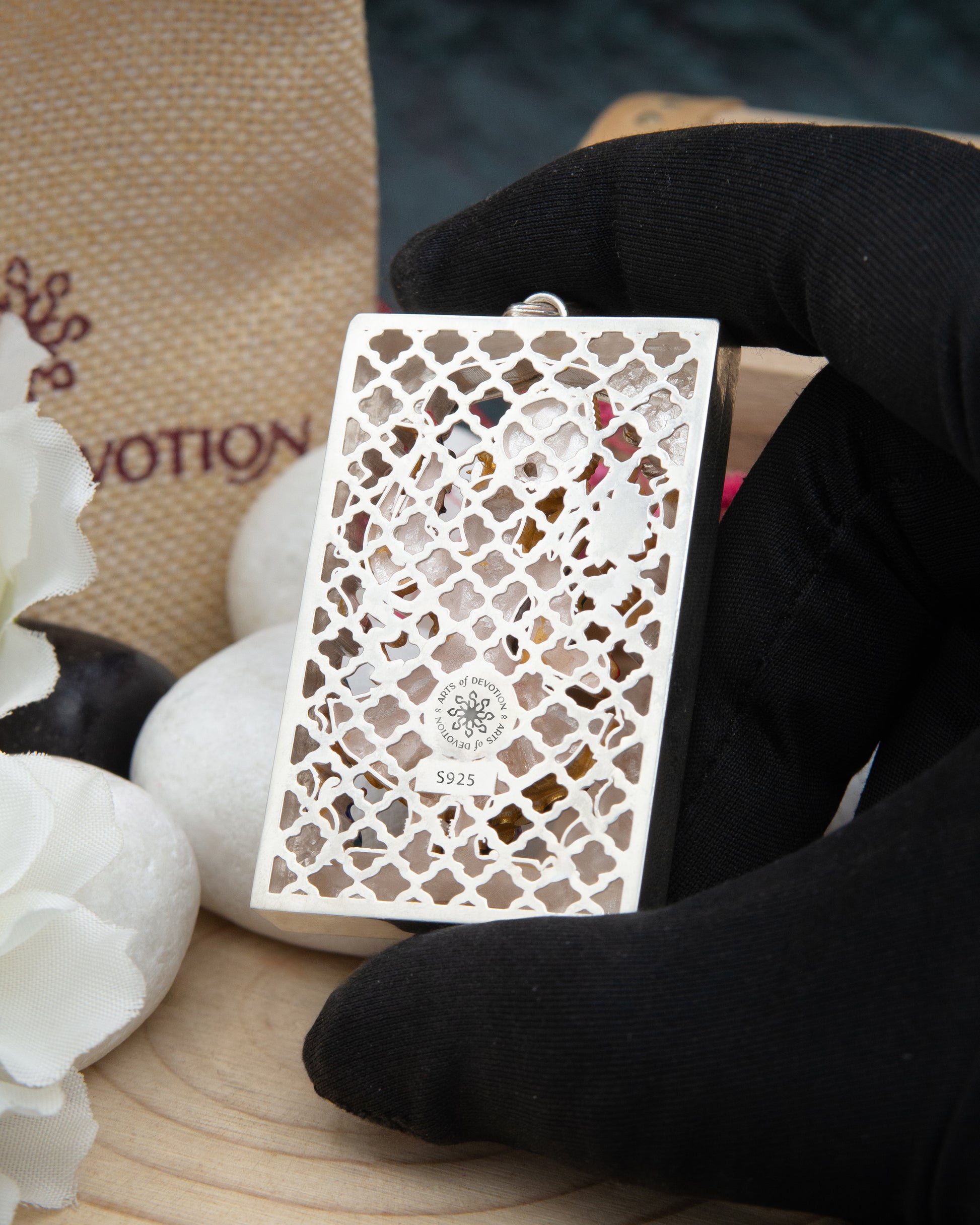 Each piece is meticulously handcrafted, featuring vibrant hand-painted enamel work and fine gold plating set within an oxidized frame. The focused antique finish creates a striking contrast that highlights every element—from the intricate details on the clothing to the steady grace of the posture—showcasing the skill and devotion of our artisans.